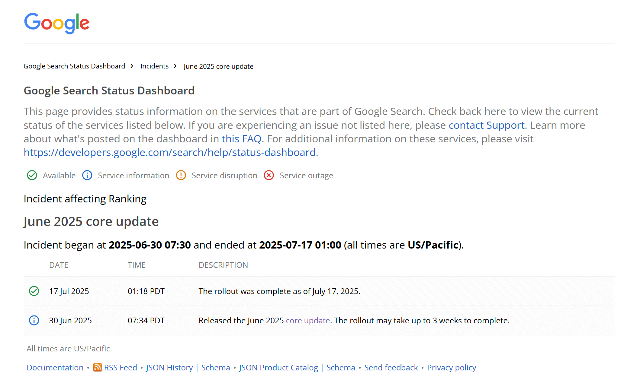 - Google Search Status Dashboard: la pagina ufficiale di Google relativa agli aggiornamenti, la trovi qui.