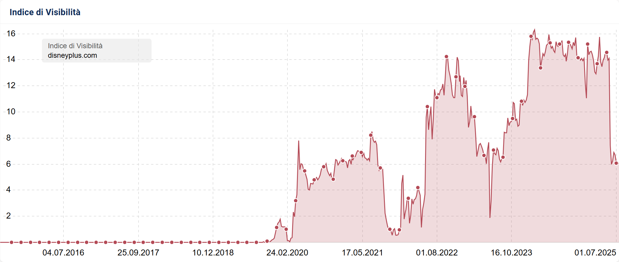 DisneyPlus.com ha subito un calo devastante del 56% della visibilità nel secondo trimestre 2025, non a causa di penalizzazioni algoritmiche, ma per una migrazione tecnica gestita in modo completamente sbagliato. L’analisi dei dati SISTRIX rivela il vero problema: Disney+ ha modificato radicalmente la struttura degli URL senza implementare correttamente i redirect.