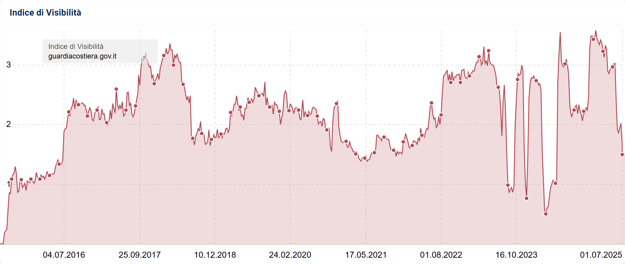 Il sito della Guardia Costiera ha perso il 48% della visibilità nel secondo trimestre, evidenziando problemi sistemici nell’infrastruttura digitale delle istituzioni italiane. I cali sembrano correlati a:
