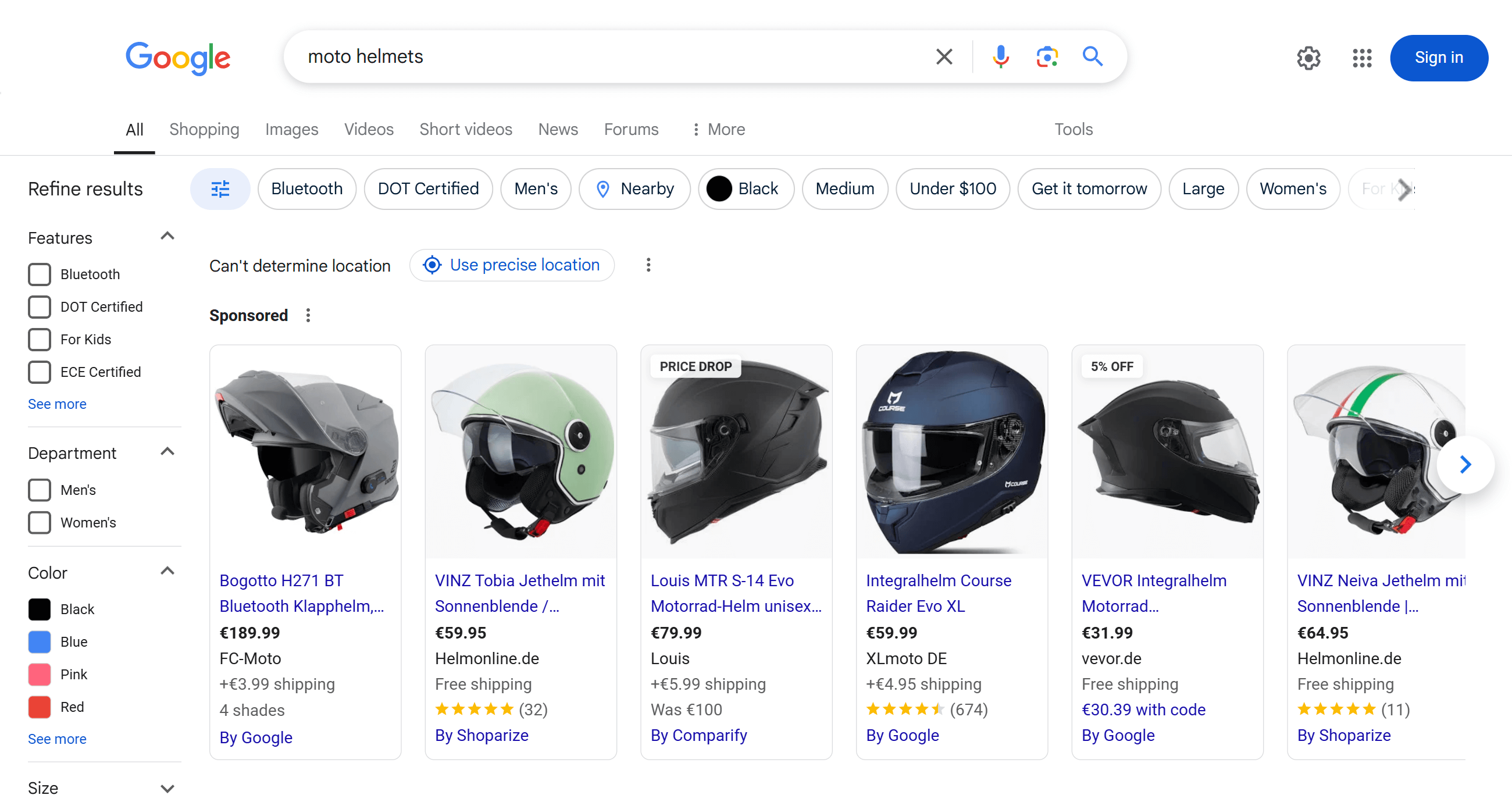 In più – migliora sempre di più nel darci la possibilità di muoverci fra SERP già filtrate per esigenza dell’utente – come taglia o esigenze di genere. Si tratta di un tipo di SERP al quale ci siamo già abituati – ma che sta diventando sempre più precisa e strutturata.