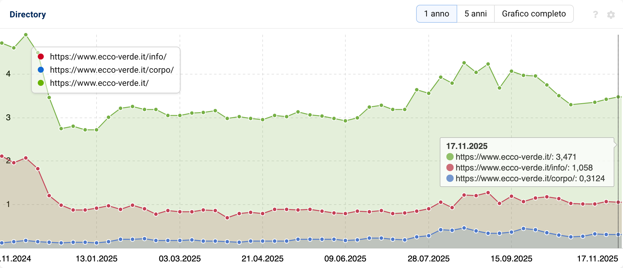 Questa directory consente al sito di presidiare efficacemente un ampio ventaglio di keyword informative, rafforzando la topical authority complessiva del dominio, che a sua volta sostiene le performance delle keyword più commerciali.