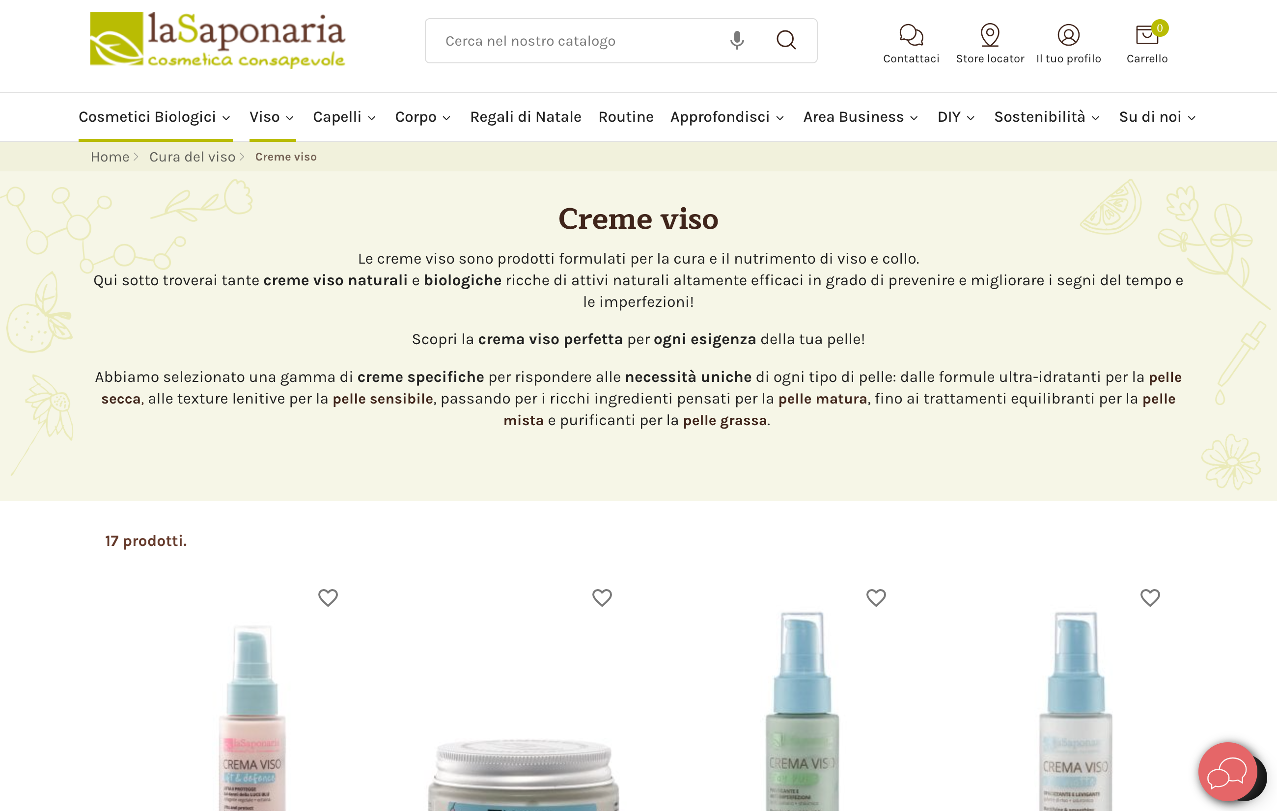La categoria “Creme Viso” del brand La Saponaria occupa la prima posizione, dimostrando che la rilevanza tematica e l’autorevolezza del brand possono superare la pura dimensione del catalogo.