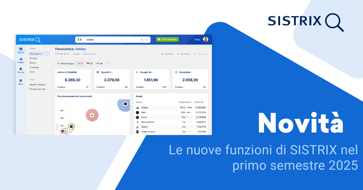 Nuove funzioni per le AI Overview, un Indice di Visibilità dedicato ai Chatbot, analisi mirate per i sistemi generativi e tanti altri piccoli miglioramenti: insomma, SISTRIX continua ad evolversi! Ecco una panoramica delle novità più importanti della prima metà del 2025.