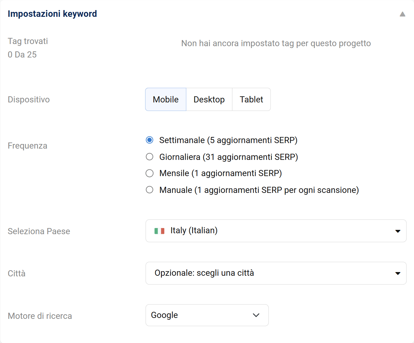 - Ricerca di keyword: utile per scoprire quali query cercano i potenziali clienti della tua zona.