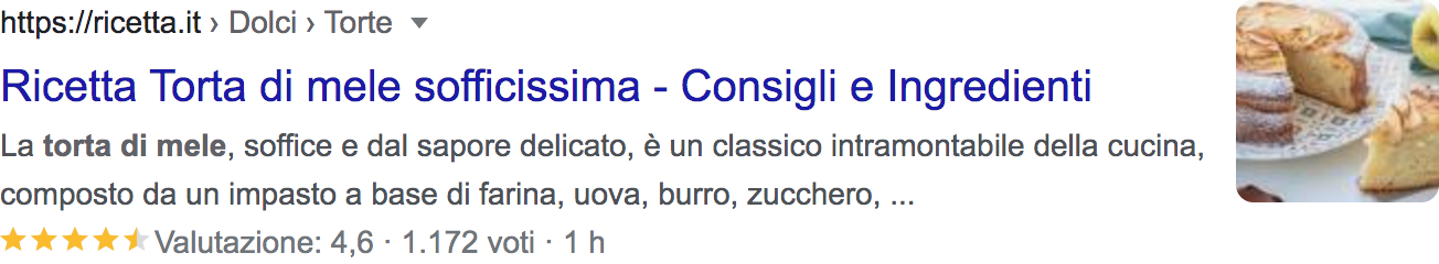 Questi snippet vengono generati da dati strutturati che puoi archiviare nel codice sorgente di qualsiasi documento HTML (ovvero qualsiasi sito web). Questi consentono ai bot di Google di classificare più facilmente gli elementi della tua pagina e aumentano la possibilità che il motore di ricerca premi particolarmente questo “aiuto” nei risultati di ricerca.