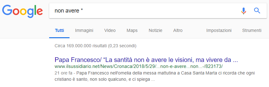 Potrai utilizzare questi e tanti altri simboli per adattare la tua ricerca con l’operatore.