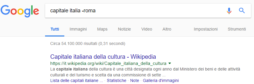 Il trattino è un simbolo estremamente utile per escludere determinate parole o frasi dalla ricerca, oppure anche una determinata pagina (ma anche un sottodominio, una directory o un URL).