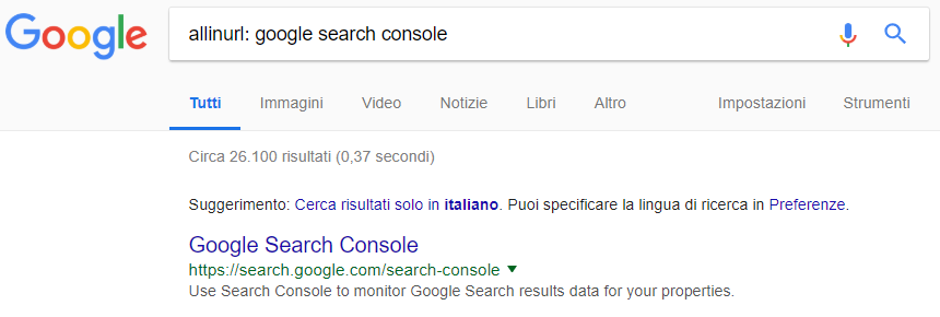 In questo caso si tratta degli operatori di ricerca allinurl: e inurl:, che ti aiuteranno a cercare una parola (inurl:) o più parole (allinurl:) dell’URL della pagina indicizzata.