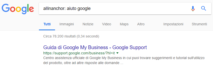 È importante tenere a mente, però, che Google non mostrerà la pagina in cui è contenuto l’anchor text cercato e come esso appare.