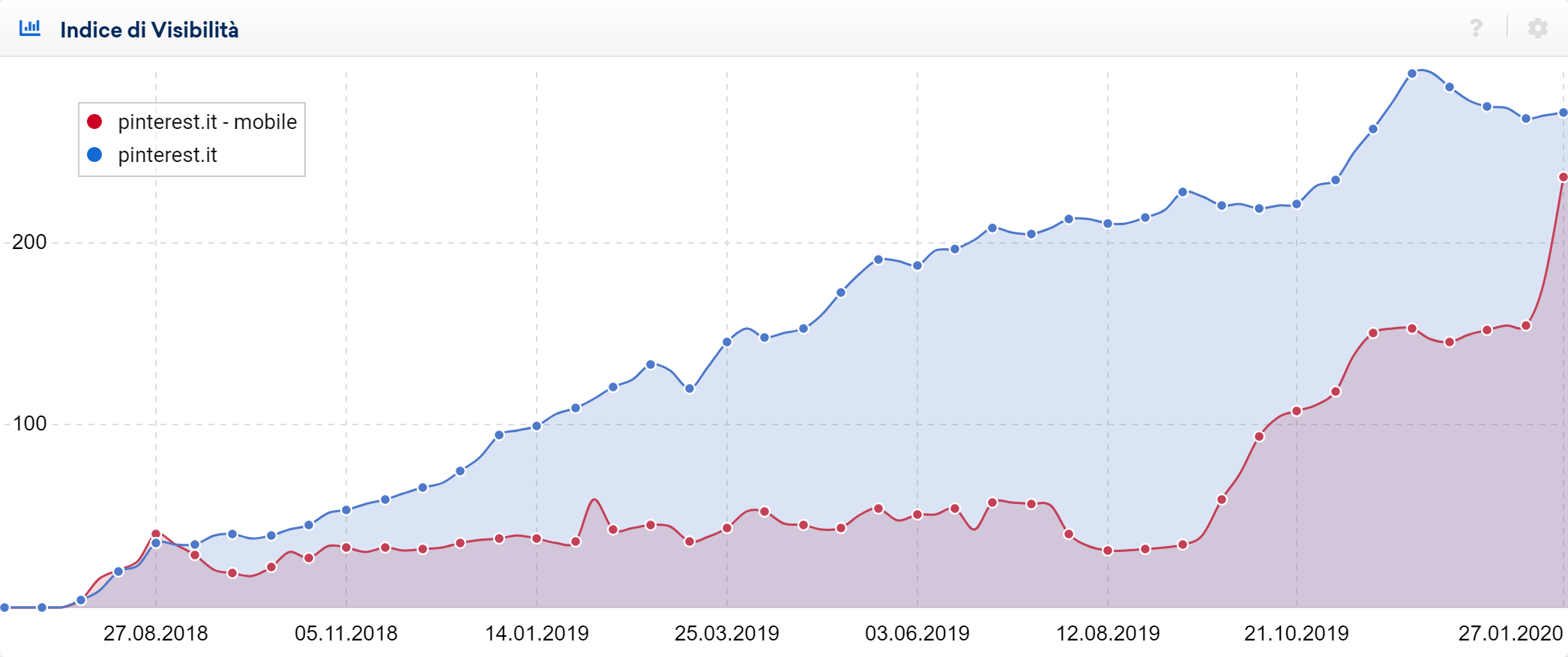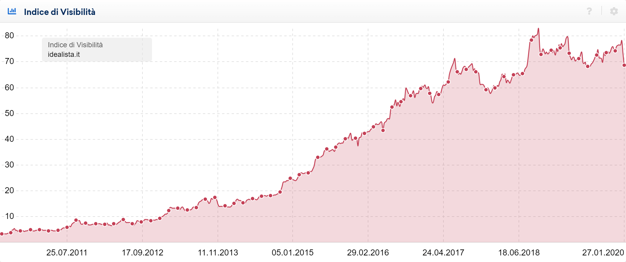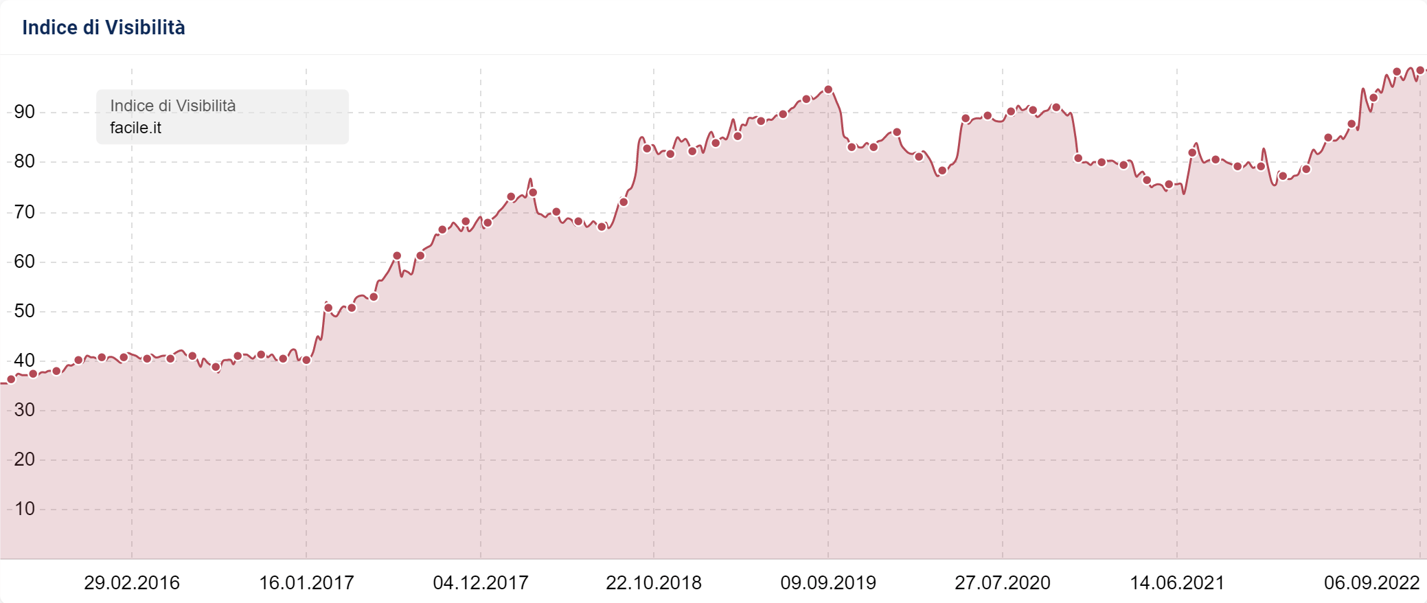 In qualità di creatori dell’Indice di Visibilità, offriamo questa metrica da circa 15 anni, permettendoti di analizzare retrospettivamente qualsiasi dominio, ma anche sottodominio, directory o persino singolo URL nel tempo.
