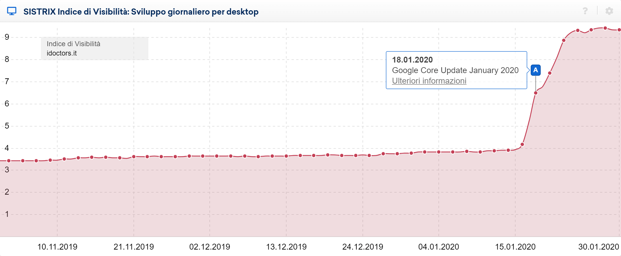 L’Indice di Visibilità di SISTRIX è un valore che rappresenta la visibilità di un dominio nelle pagine dei risultati di ricerca di Google. Dal 2008 è considerato il criterio di riferimento per misurare il successo delle attività SEO.