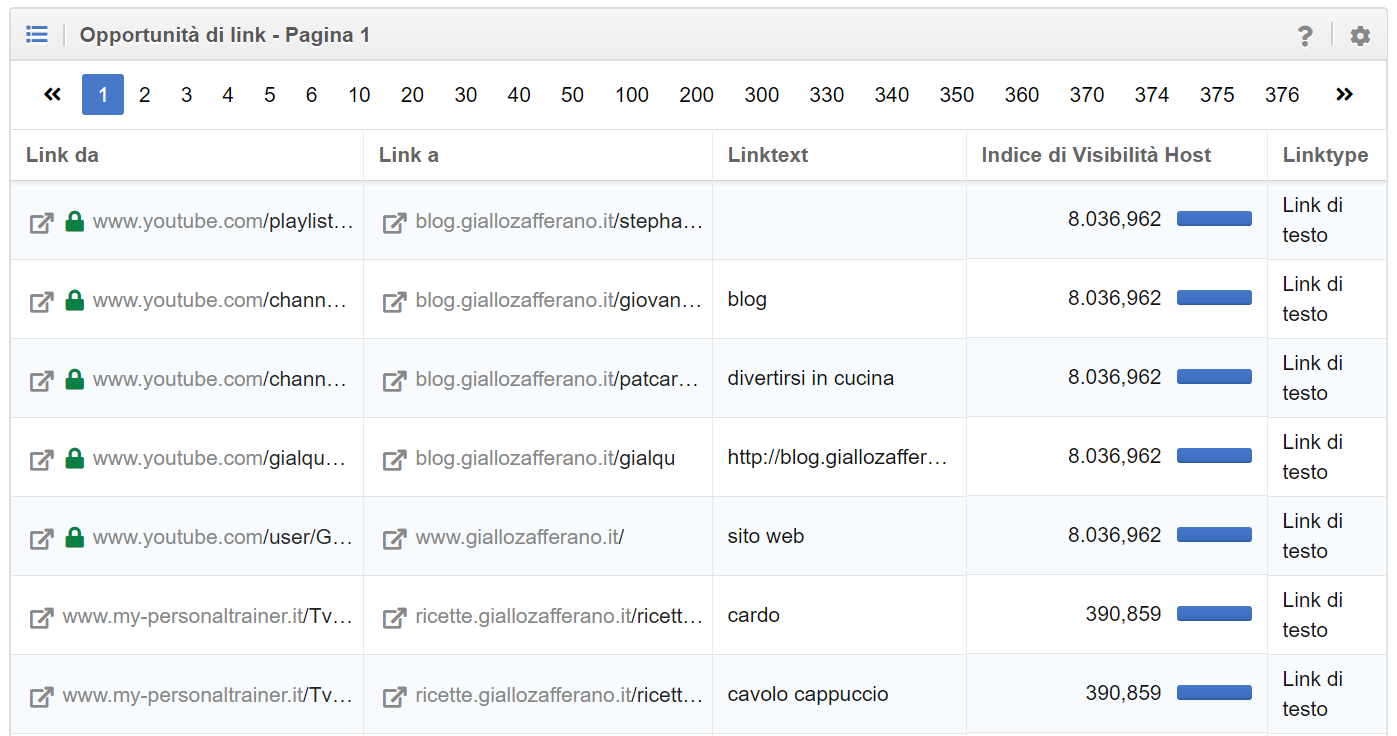 Nota bene: prima di iniziare a considerare un host come potenziale fonte di backlink per il tuo sito, vale la pena dare un’occhiata nel dettaglio all’andamento dell’Indice di Visibilità. Gli host che hanno un Indice di Visibilità molto basso, o per i quali si osserva un forte calo, dovrebbero sicuramente essere messi in discussione in modo critico e la qualità del sito dovrebbe essere esaminata da vicino.
