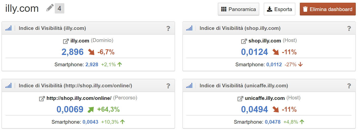 Eventualmente potrai analizzare singolarmente ogni Directory del dominio ed inserirne lo specifico Indice di Visibilità in una Dashboard.