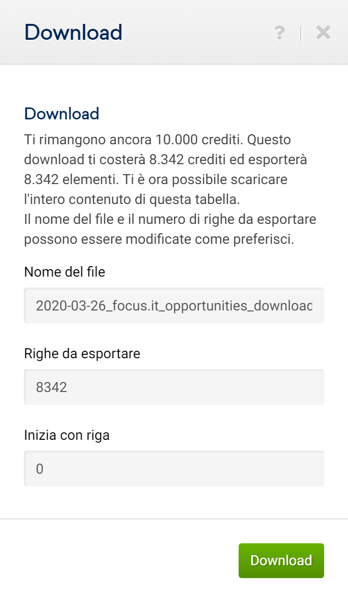 Download: 2 esporta la tabella sotto forma di file CSV. Tutto su Export e crediti.