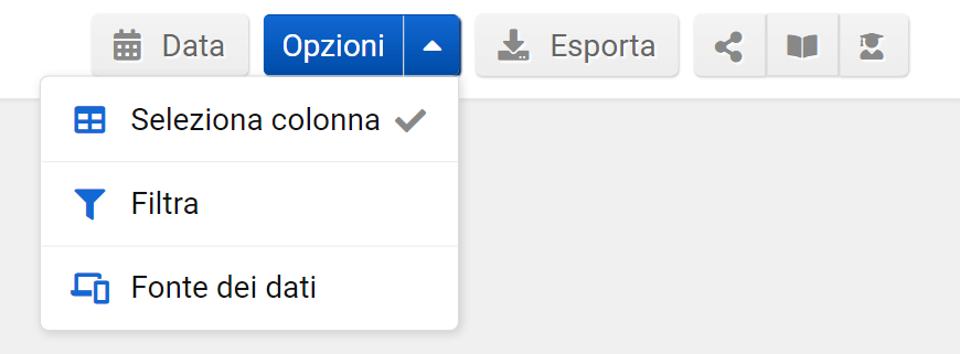 Sopra la tabella trovi una barra con varie opzioni.