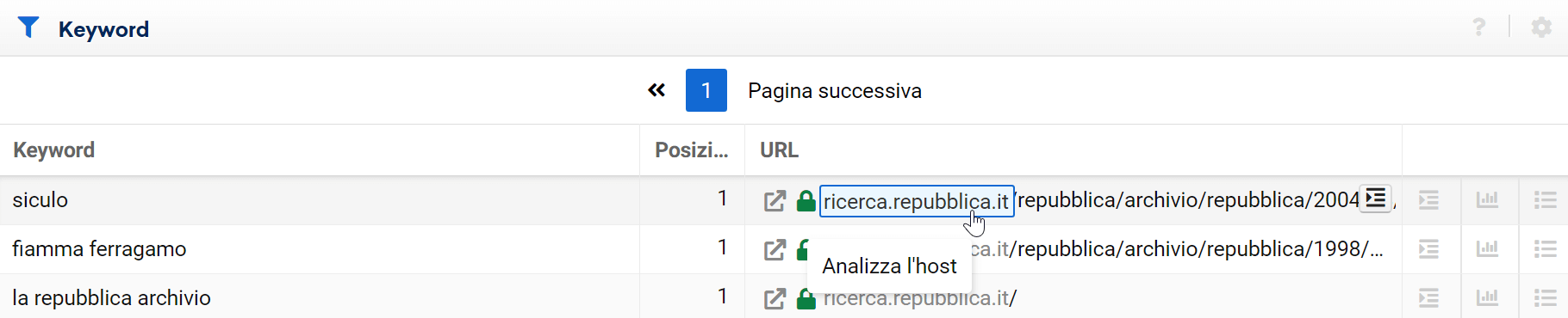 Potrai usare questo metodo in qualsiasi tabella del Toolbox che contiene una lista di URL: passando il cursore del mouse sopra l’URL, infatti, le parti che lo compongono verranno evidenziate, per cui potrai facilmente scegliere quali di esse approfondire (ad esempio, il sottodominio).