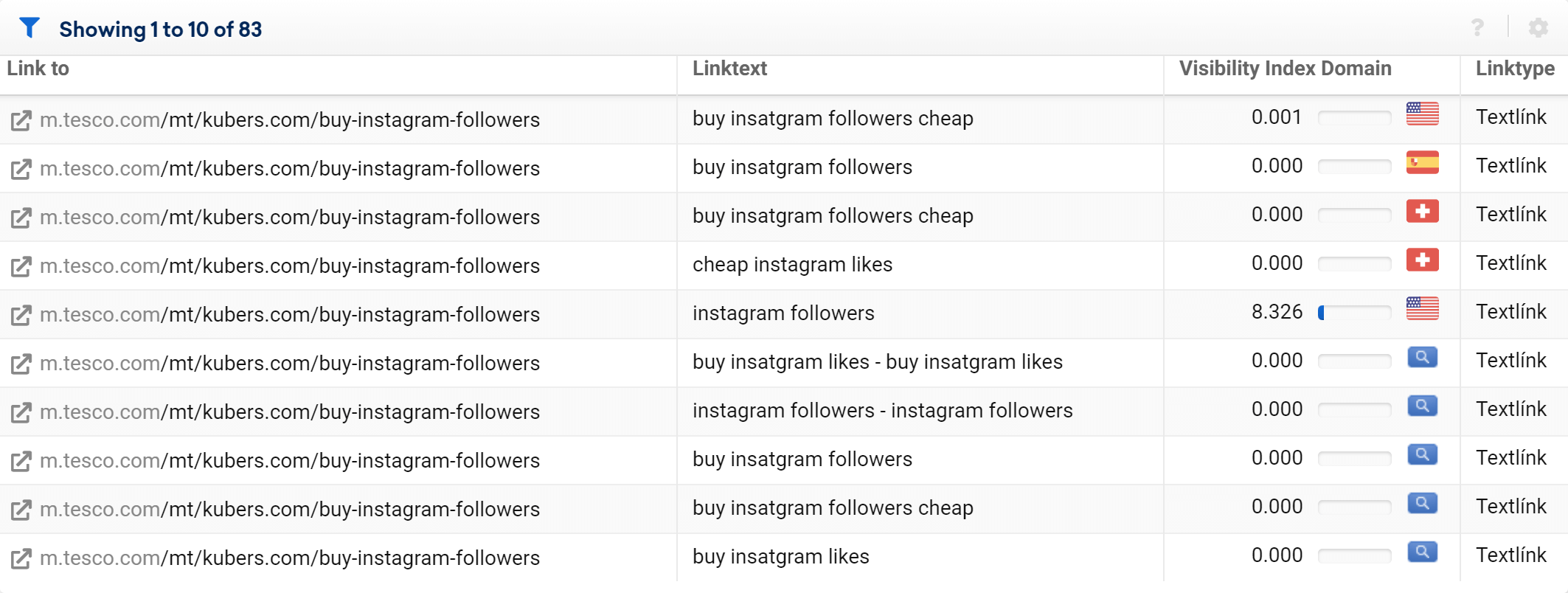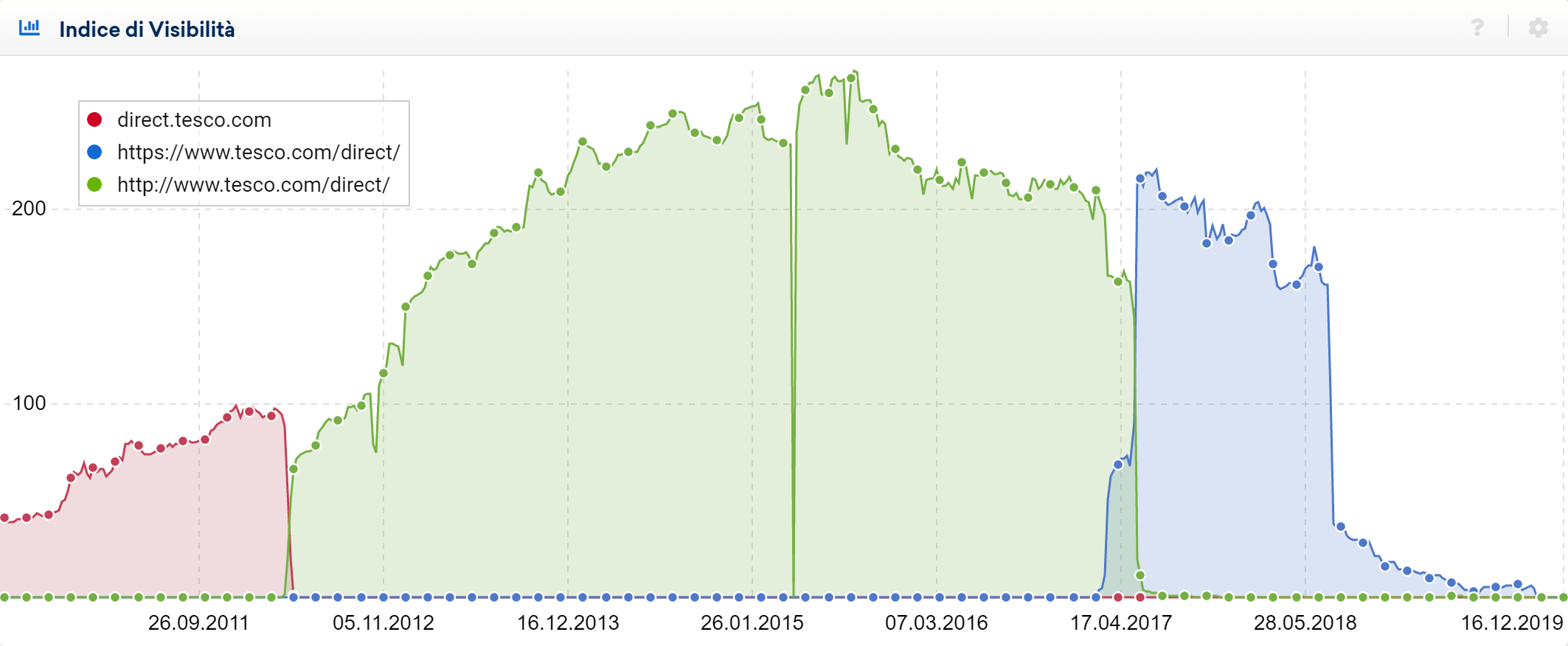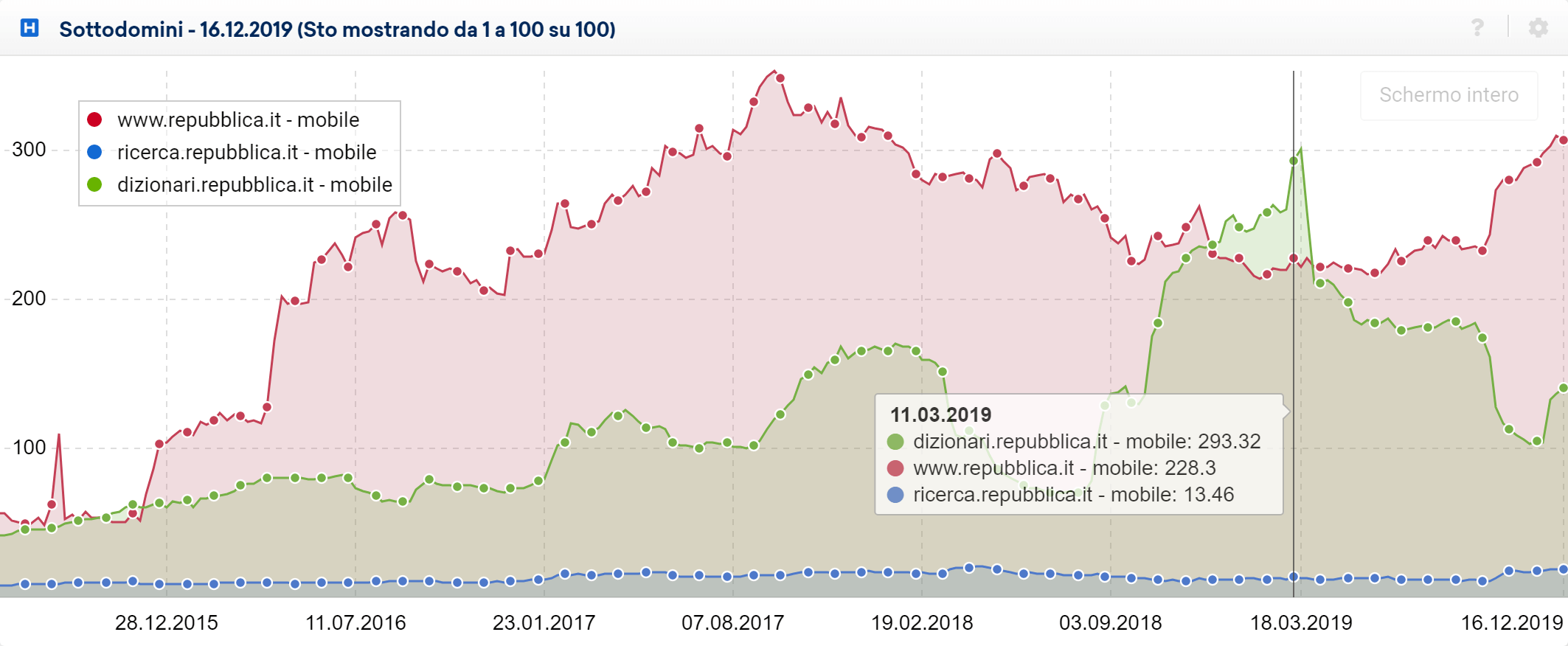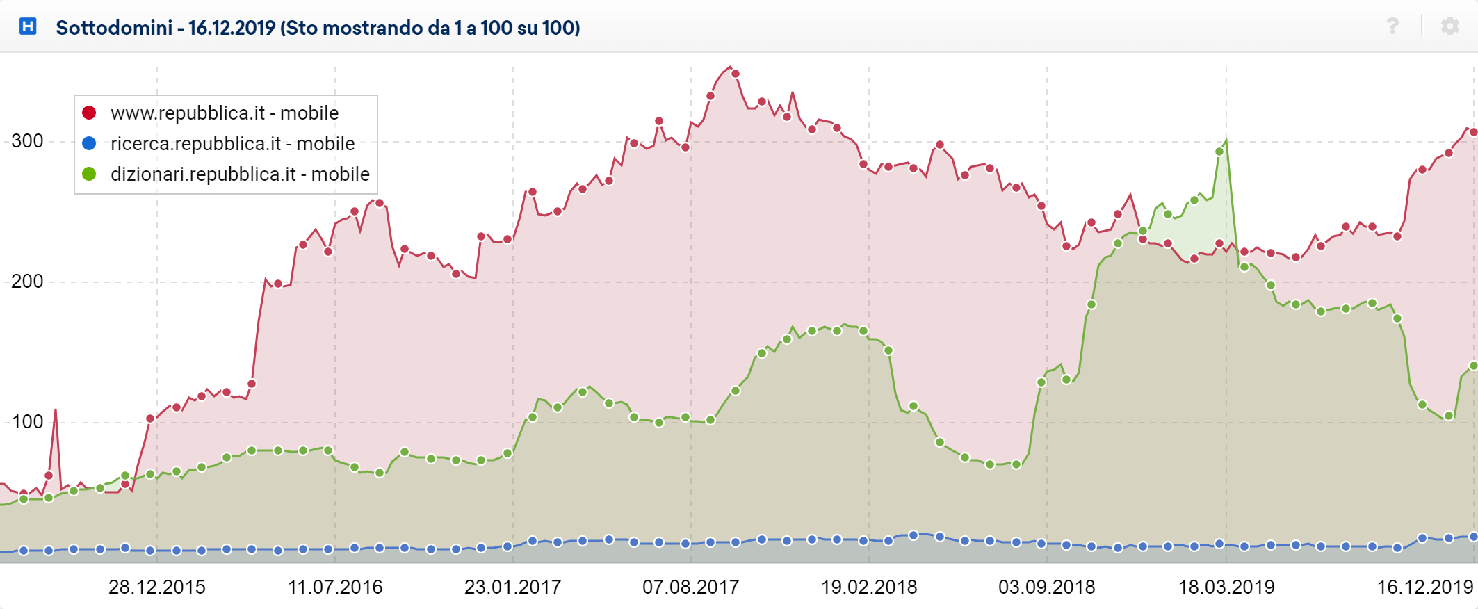 Vediamo ora alcuni esempi di utilizzo dei dati di visibilità dei sottodomini.